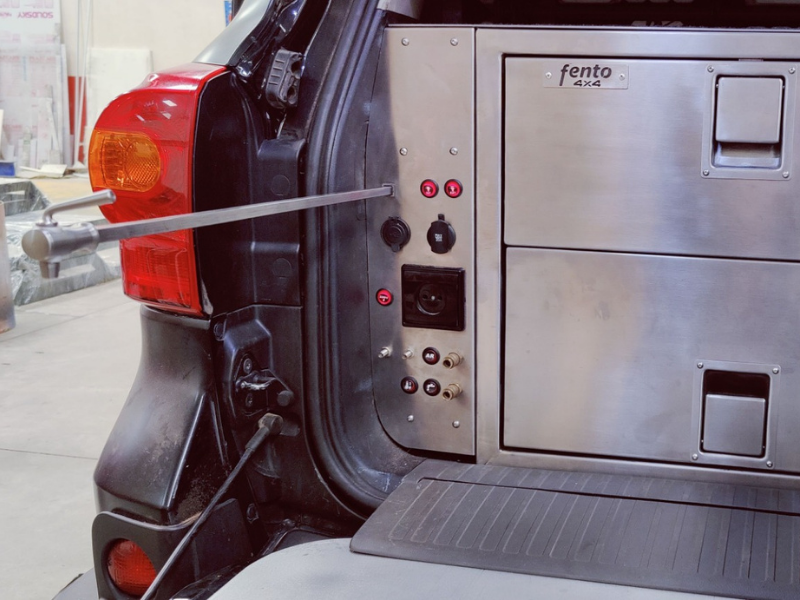 3 tiroirs + réfrigérateur + tableTiroirs avec guides télescopiques