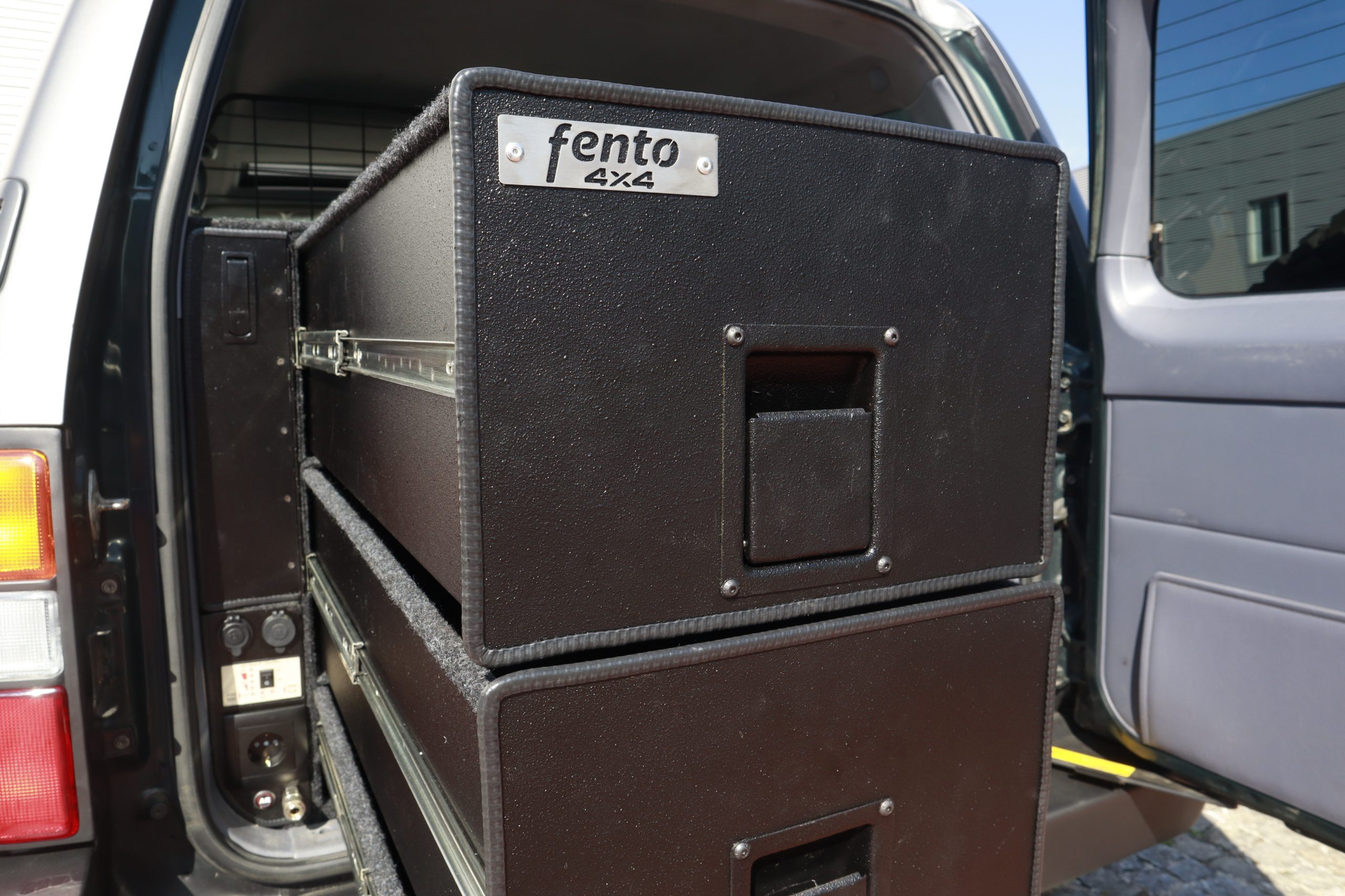 2 tiroirs + réfrigérateur + tableTiroirs avec guides télescopiques